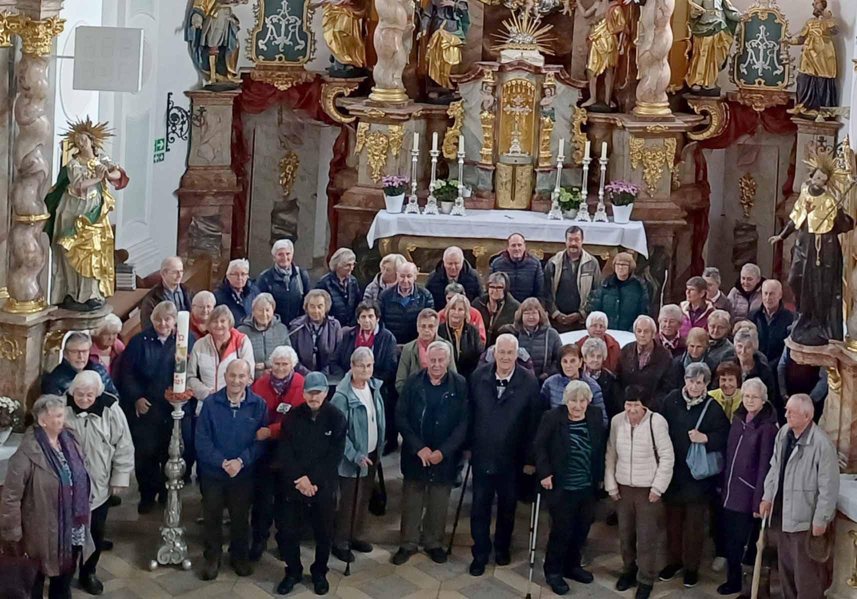 Der für heuer letzte Ausflug der Pfarrsenioren Gleißenberg-Lixenried führte vergangenen Mittwoch zunächst nach Arrach zur Hausbrennerei Drexler. Dort gab es neben einer Schnapsverköstigung samt Einkaufsgelegenheit auch viel Sehenswertes. Mit dem Destillen-, Handwerks-, Holzkunst- und Mineralienmuseum war für jeden etwas Interessantes dabei. Anschließend ging es mit dem vollbesetzten Reisebus weiter zur bekannten Wallfahrtskirche in Weißenregen, wo Hedwig Klein eingangs mit der Gruppe eine Andacht zelebrierte. Nach der Besichtigung der prunkvollen Kirche gab es im daneben liegenden Berggasthof „Zur Klause“ noch eine Brotzeit, ehe Busfahrer Werner wieder allesamt gut heimchauffierte. Das nächste Treffen findet somit wieder im Pfarrheim statt und ist für den 19. November geplant. Dabei will Bürgermeister Wolfgang Daschner die neue Gemeindeschwester aus Treffelstein vorstellen.
