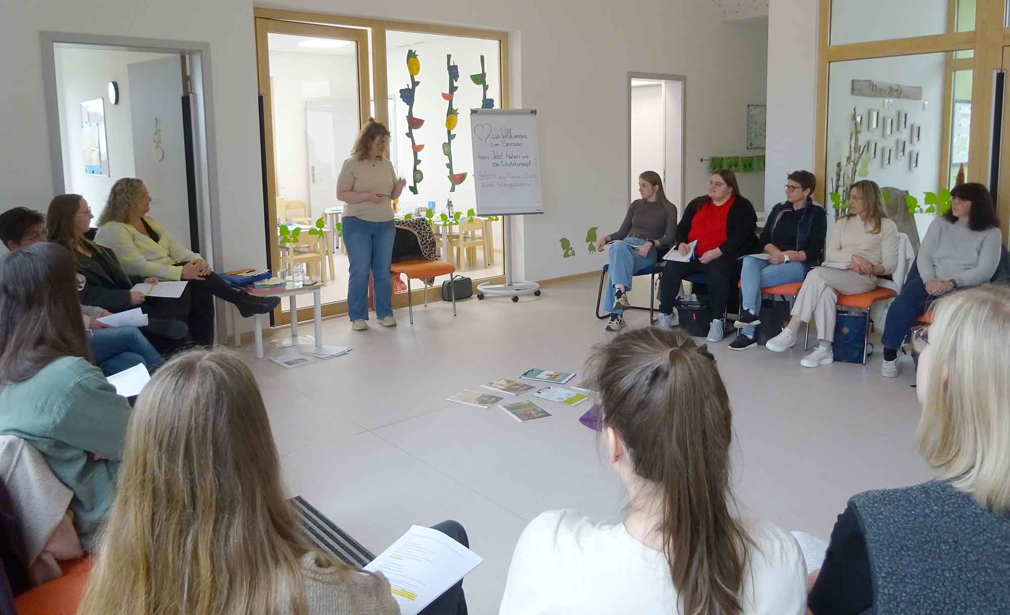 Im Gleißenberger Kinderhaus durchleuchtete Referentin Iris Frehse-Oisch (stehend) Themen zum „Schutzauftrag in der Kita“.
