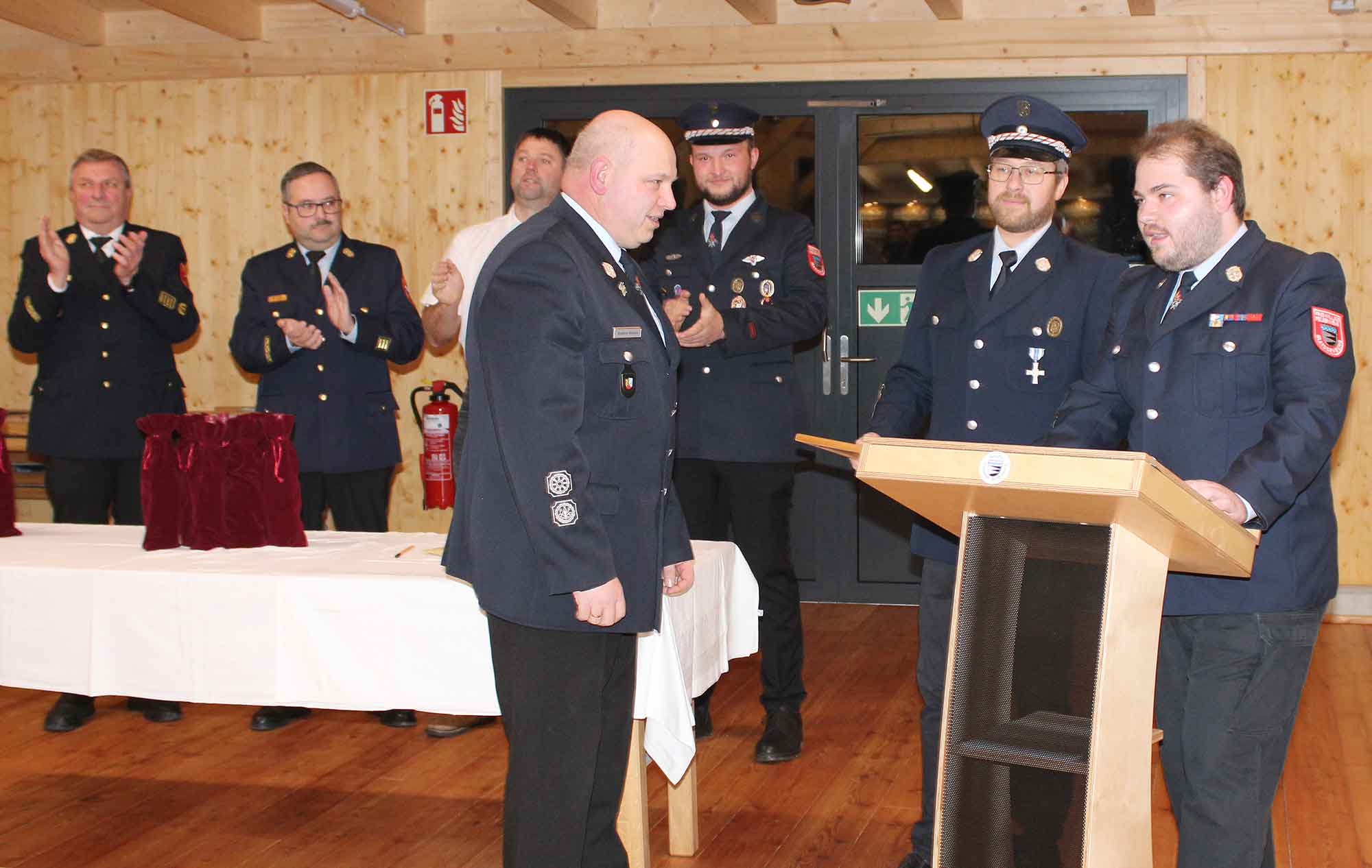 Die Ehrungen für den aktiven Dienst übernahmen Kommandant Sebastian Riederer und Vizekommandant Christian Macht. Dabei erhielten Tobias Ederer (10 Jahre), Thomas Aumann (20 Jahre), Christian Ederer (30 Jahre), Elisabeth Korherr (30 Jahre), Ludwig Lehneis (30 Jahre), Thomas Nachreiner (30 Jahre), Reinhard Riederer (30 Jahre) und Markus Riederer (30 Jahre) ebenso eine Flasche Wein samt Urkunde für die fast unzählig sowie erfolgreich abgelegten Prüfungen und nicht zuletzt auch für die tatsächlichen Einsätze in Notfällen.